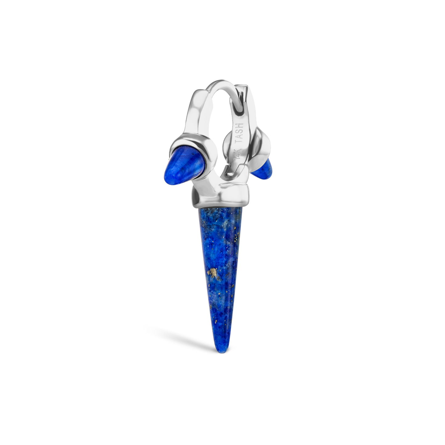 Equal parts punk and refined, this patented clicker ring features a long lapis spike flanked by two shorter spikes. One of Maria's favorite colors is on display in dazzling blue lapis with a subtle speckling of metallic pyrite that resembles the night sky.