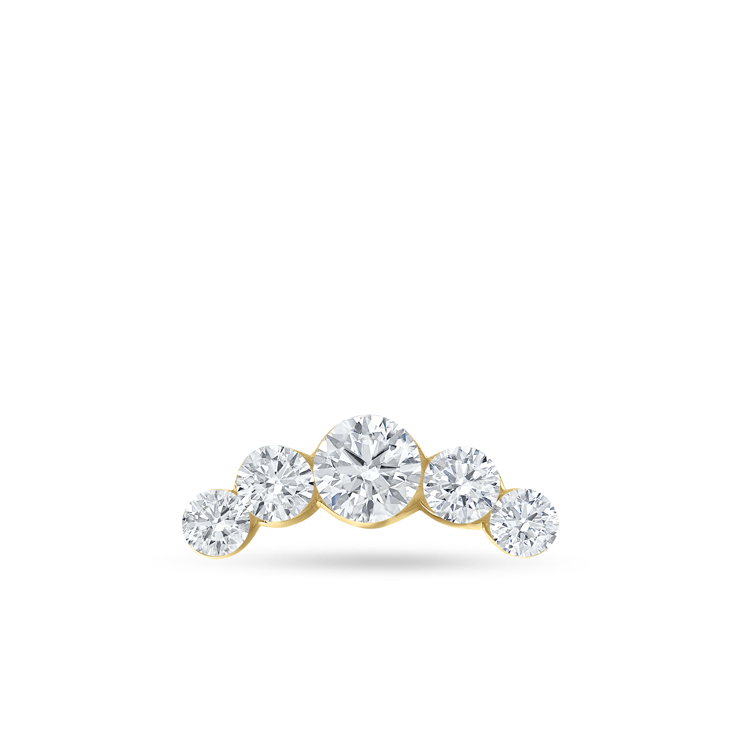 This elevated stud features five brilliant diamonds in a curved, solid gold line. Our signature invisible setting allows the stones to shine with uninterrupted sparkle.