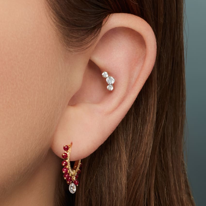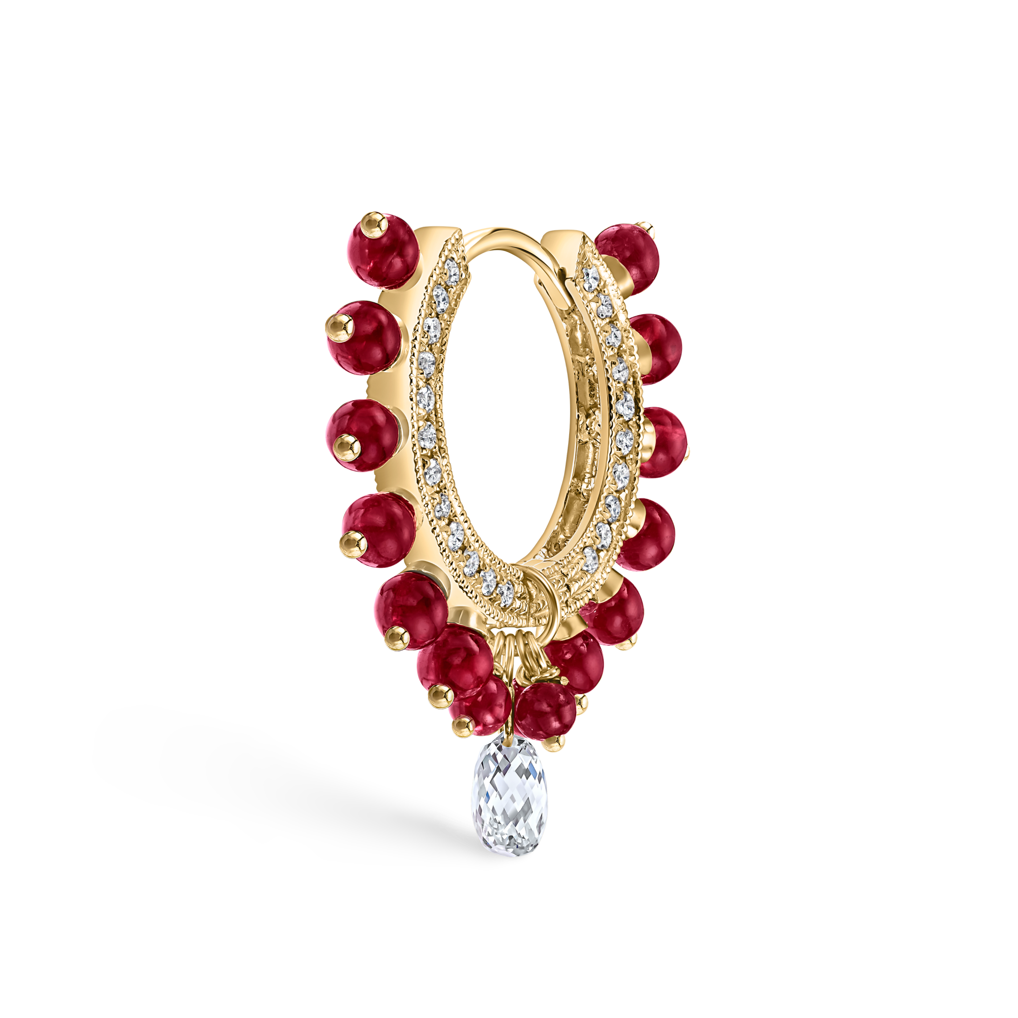Pavé Diamond Ruby Coronet with Diamond Briolette Hoop Earring