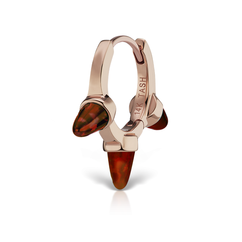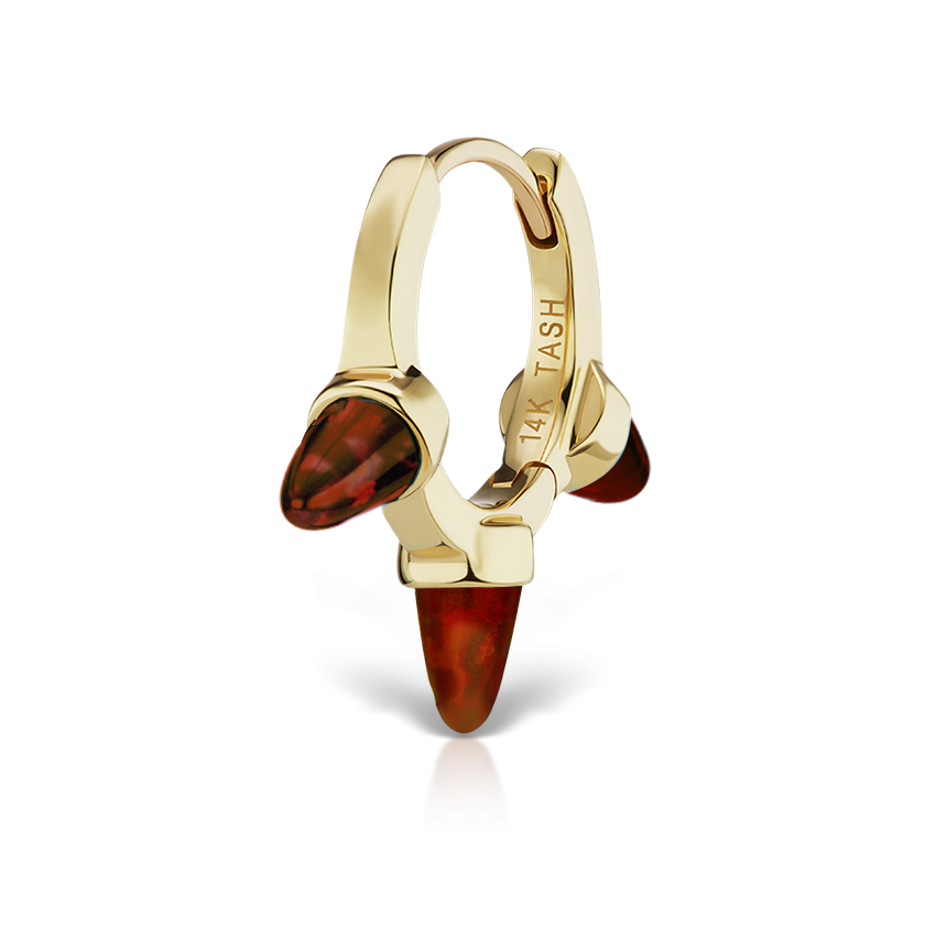 Triple Short Black-Red Opal Spike Hoop Earring
