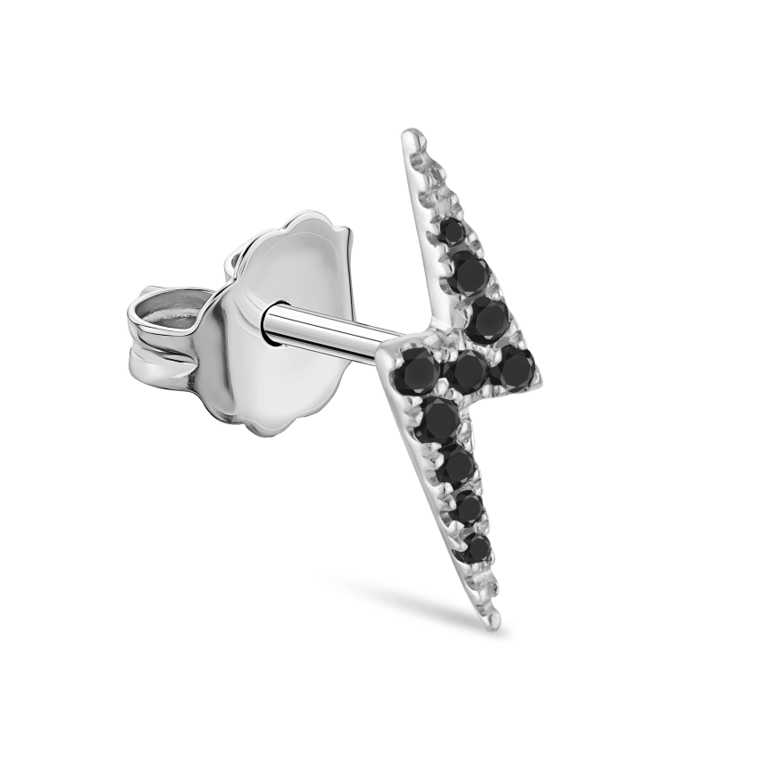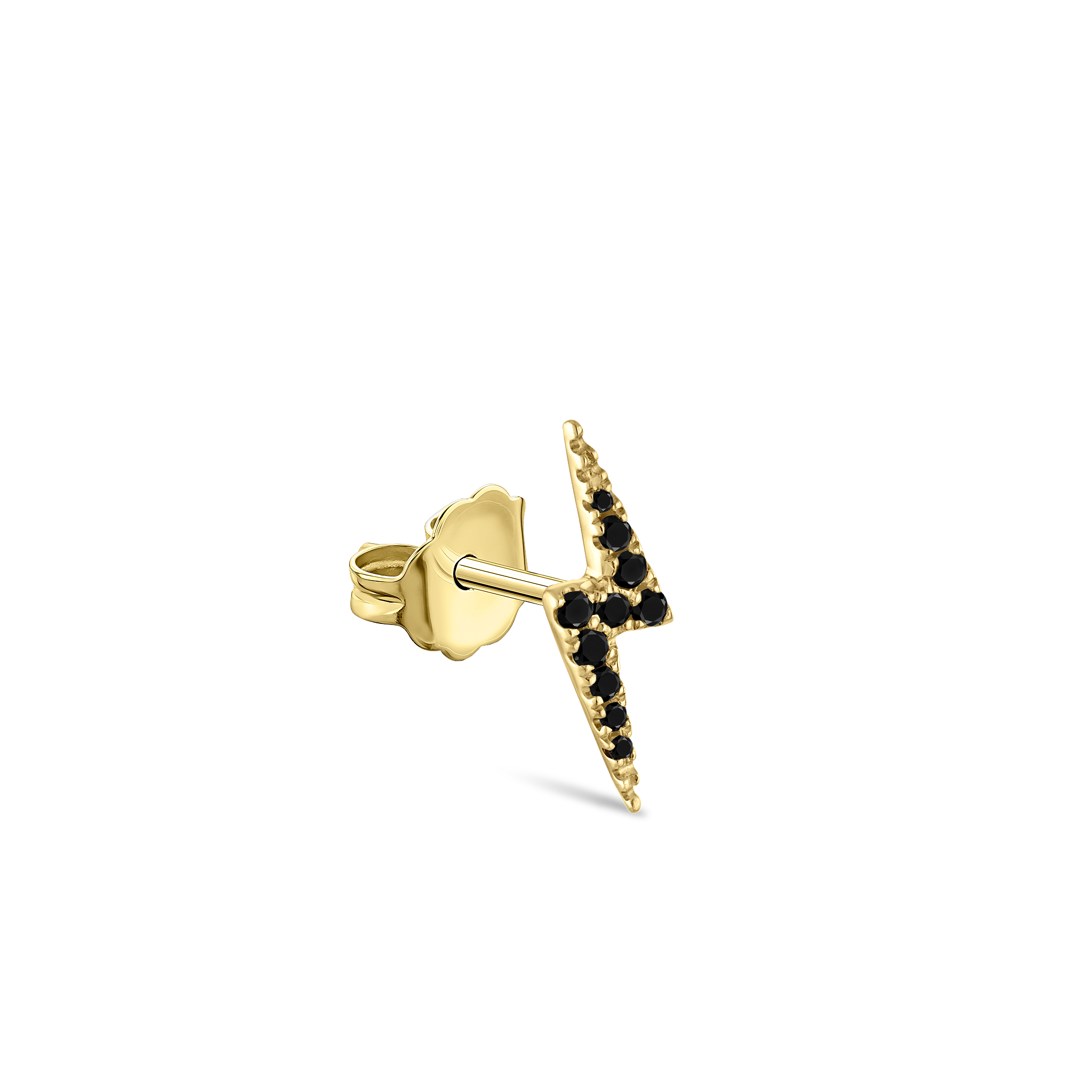 A flash of black diamonds set in solid gold, this lightning bolt is truly a striking piece.