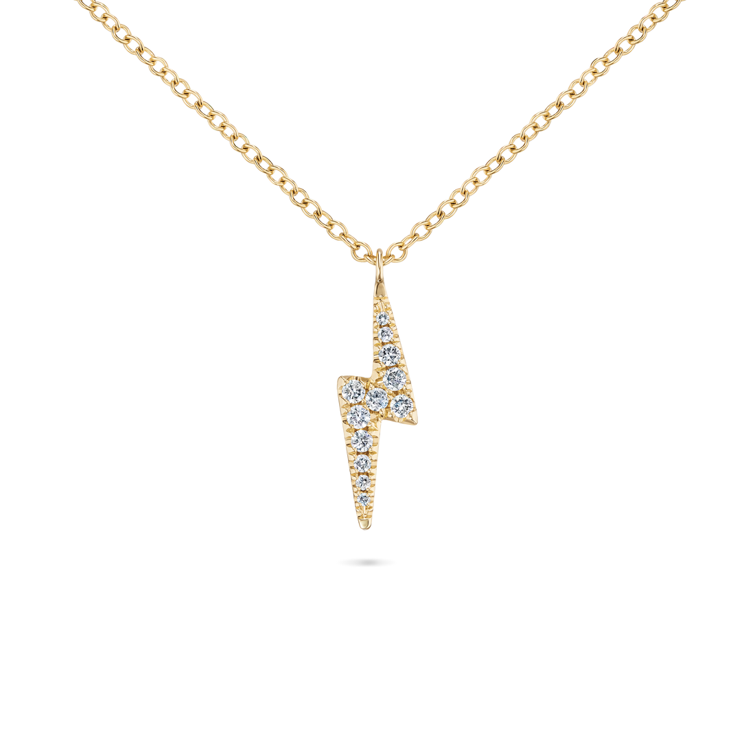 Give your style a white diamond jolt, or flip to electrify your look with striking blue sapphires. A double-sided lightning bolt pendant hangs from a delicate solid gold chain in this magnetic piece. Exclusively offered in white or yellow gold to enhance the colors of the gemstones. A patented branded padlock clasp completes the look.
