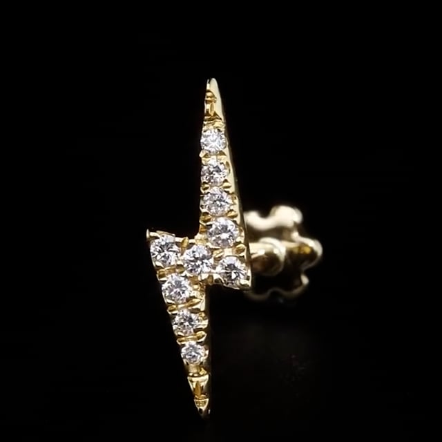 A striking lightning bolt featuring a flash of white diamonds on its solid gold surface.