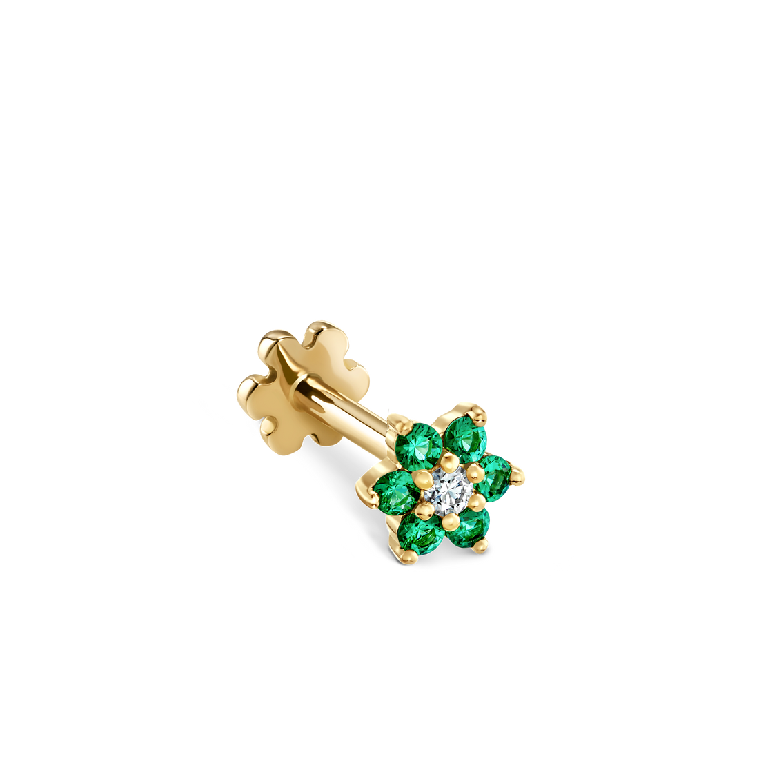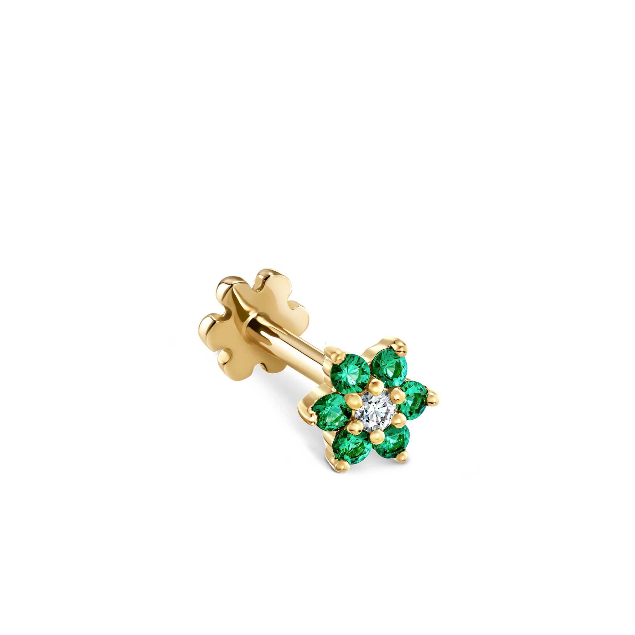 Home Emerald and Diamond Flower Threaded Stud Earring