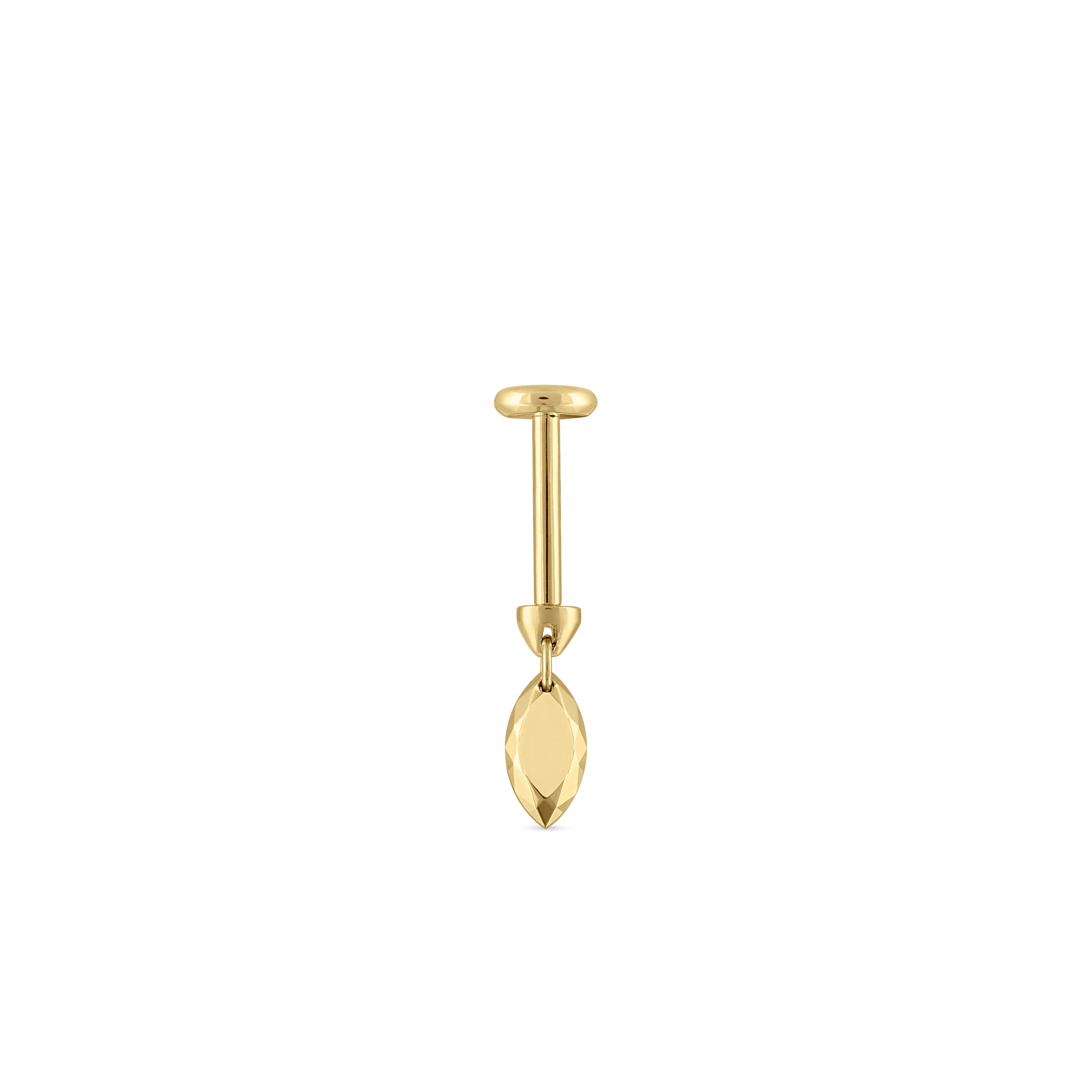 Faceted Gold Marquise Threaded Charm Earring With Titanium Backing