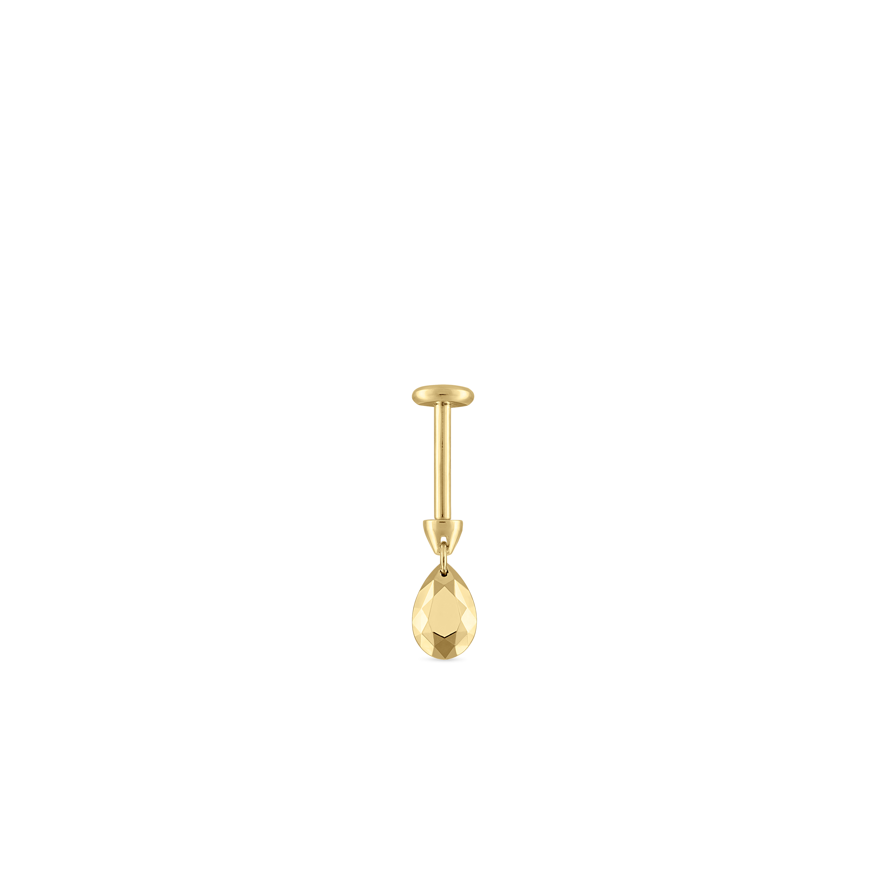 Faceted Gold Pear Threaded Charm Earring With Titanium Backing