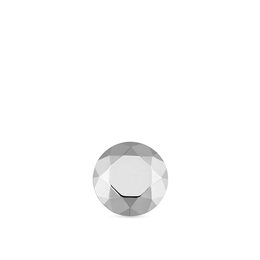 A solid gold stud meticulously engineered with the faceting of a brilliant round cut diamond. This 3D style captures the essence of its diamond counterpart, offering a modern alternative that allows for beautiful light reflection from all angles.