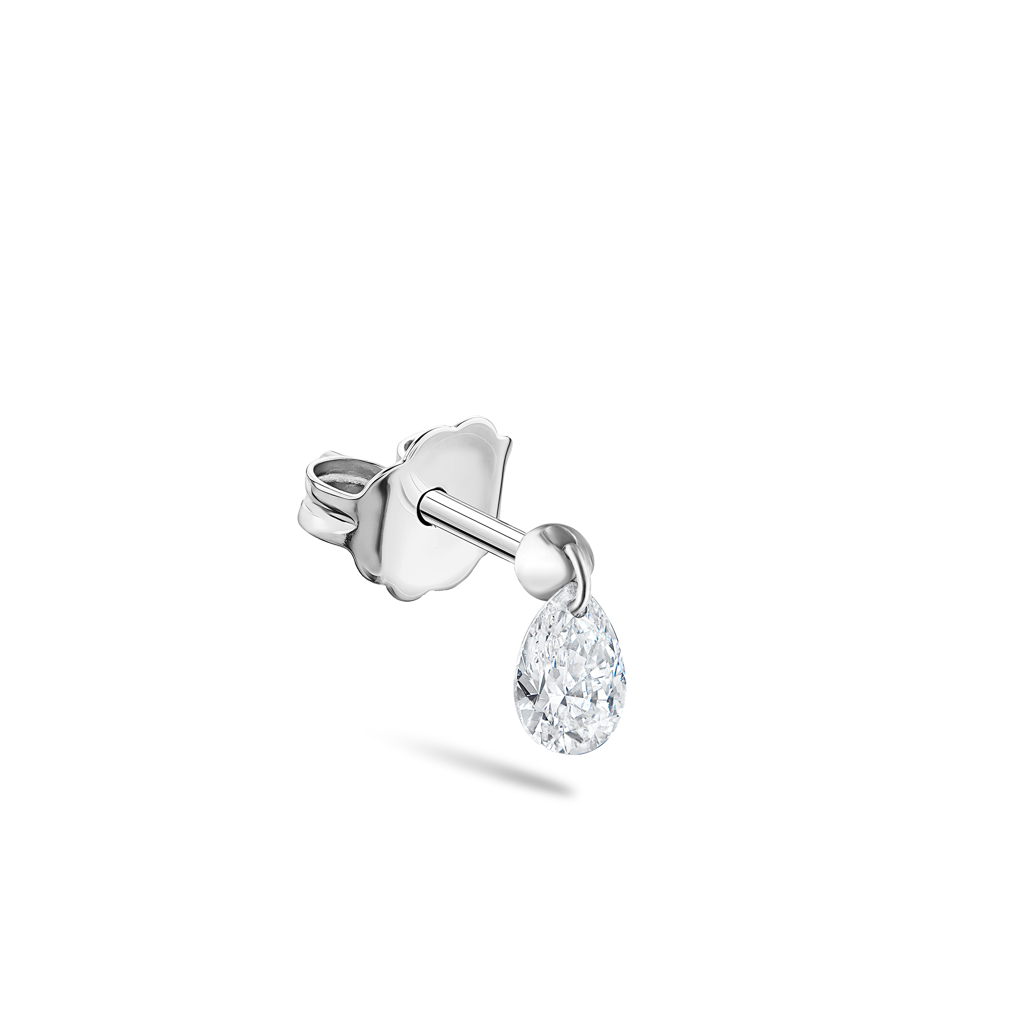 Floating Pear Diamond Charm Stud Earring