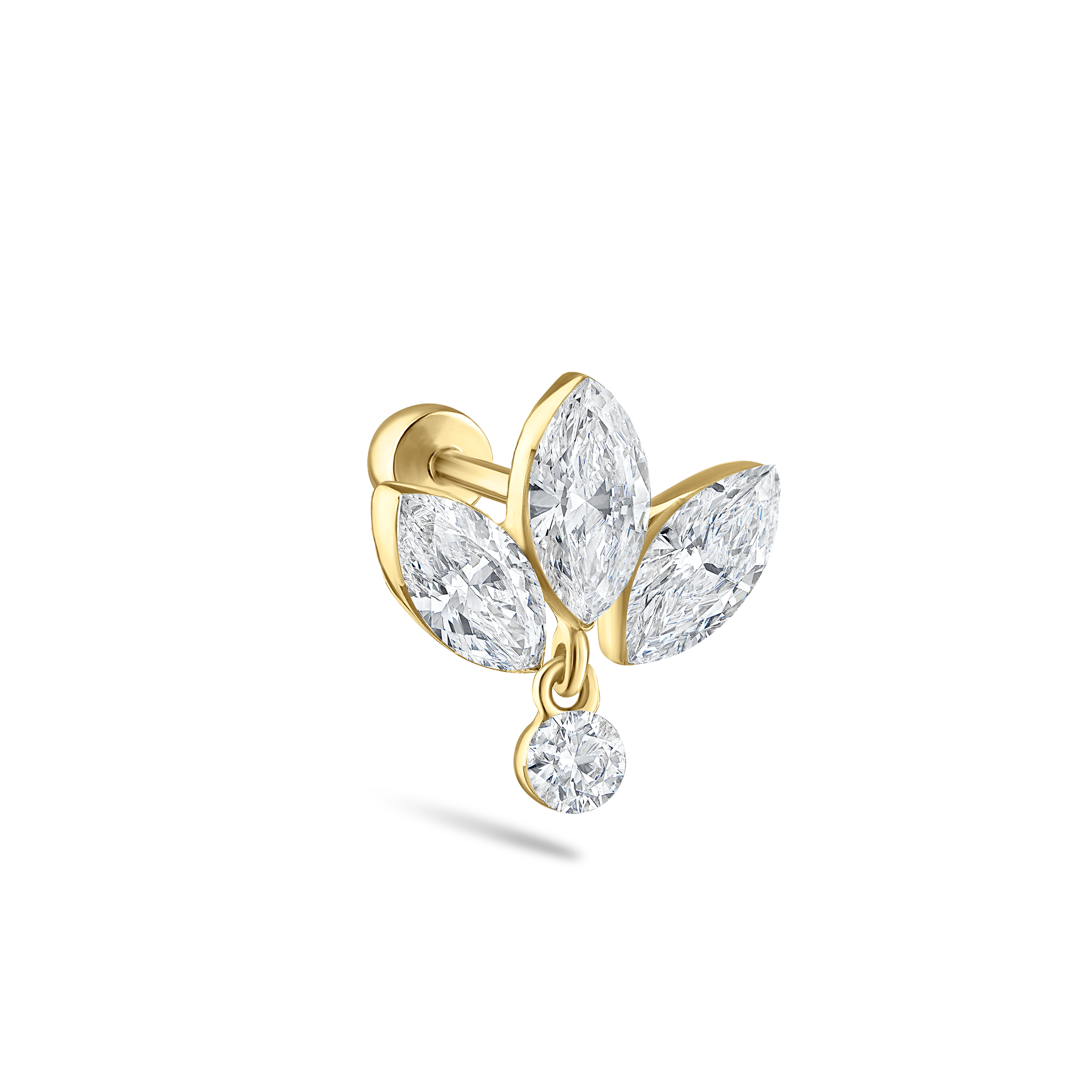Invisible Diamond Lotus with Dangle Threaded Stud Earring