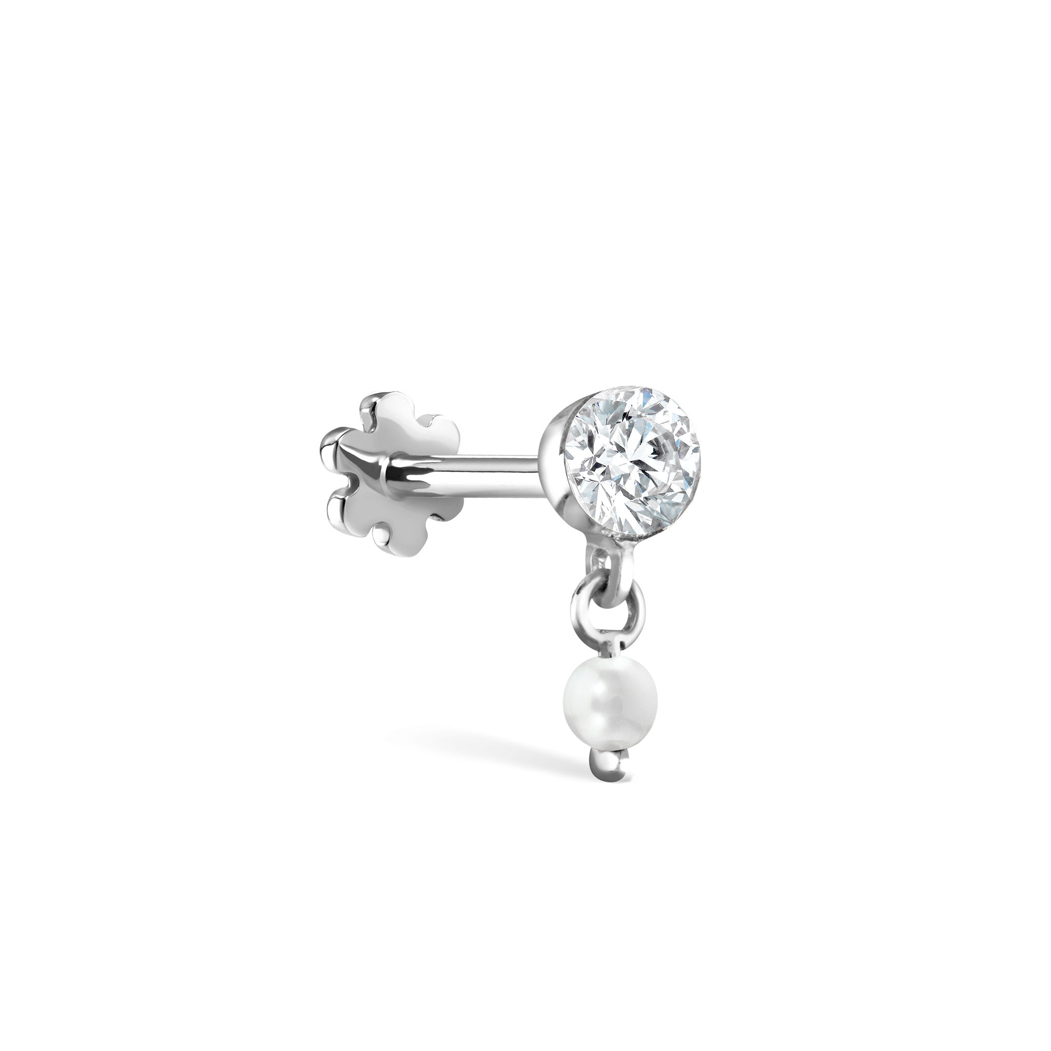 Invisible Set Diamond and Pearl Dangle Threaded Stud Earring