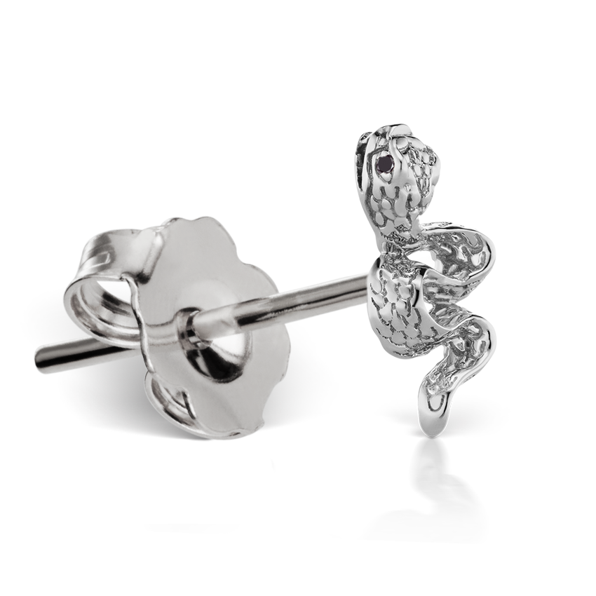Large Engraved Snake with Black Diamond Eyes Stud Earring