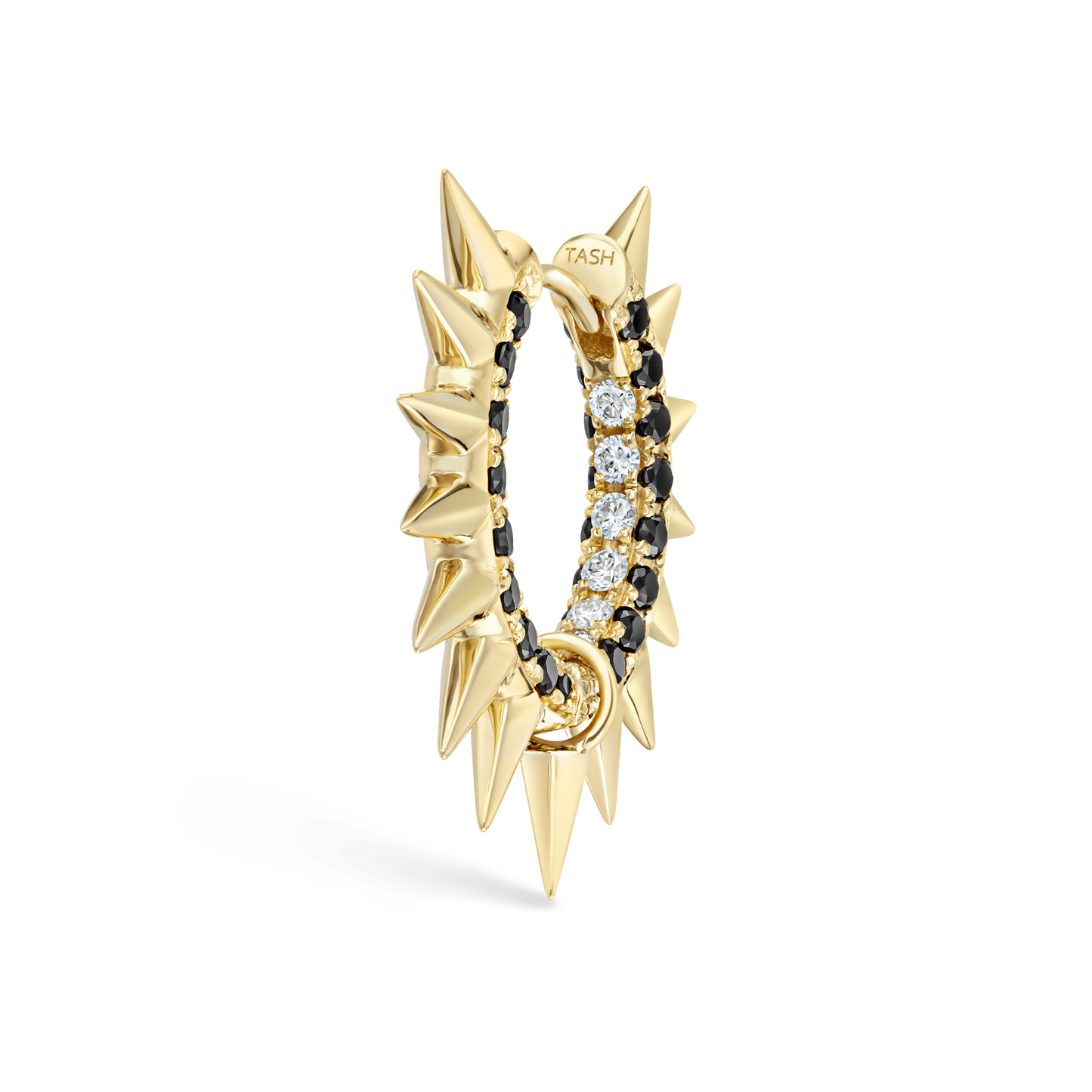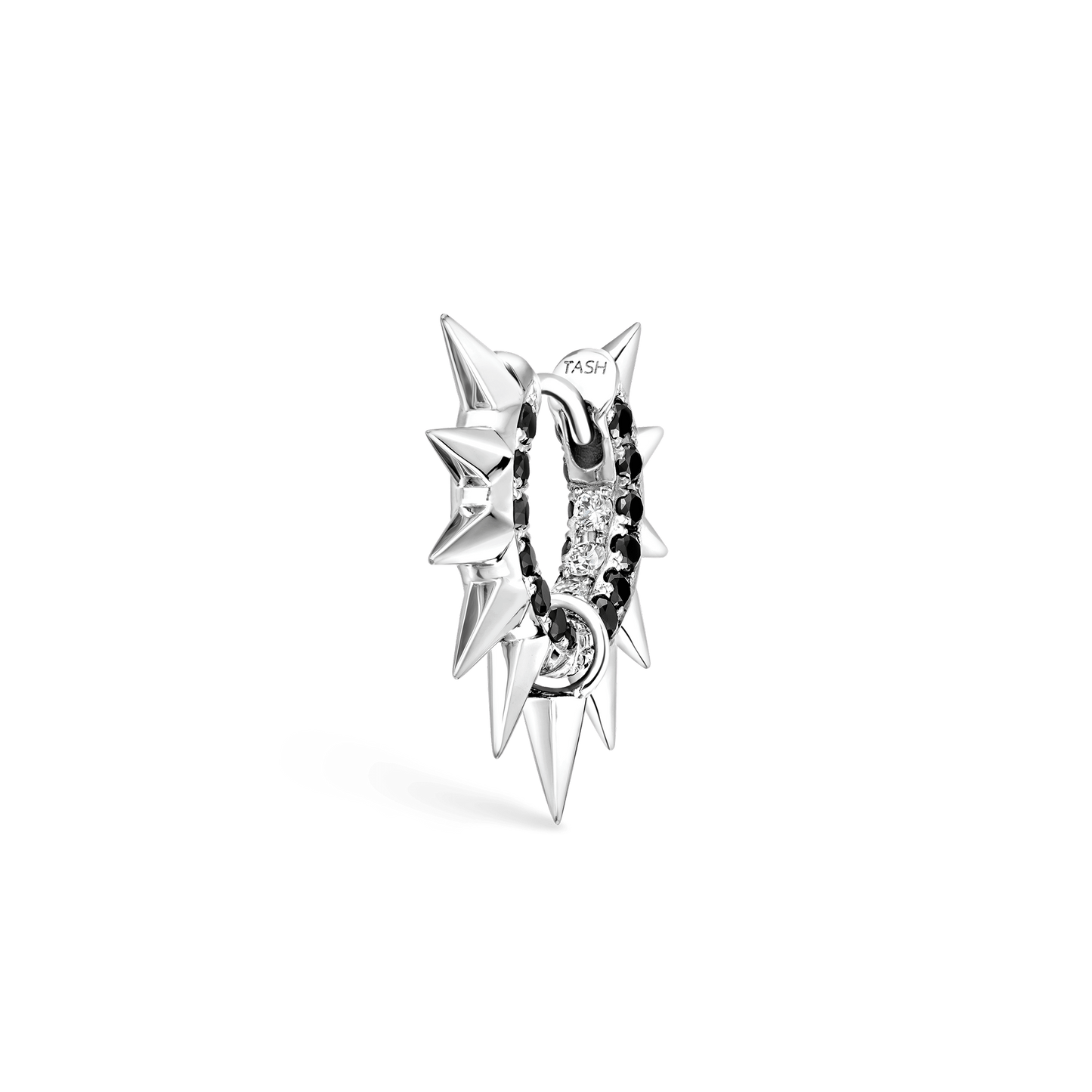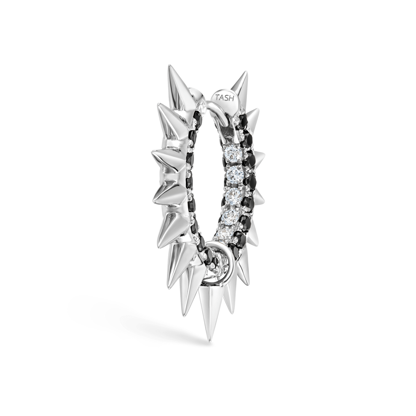 Metal Mohawk with Black and White Diamond Pavé Hoop Earring