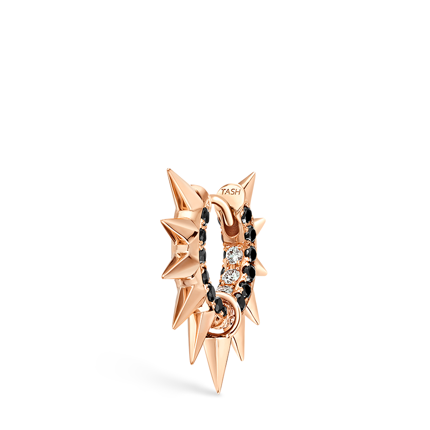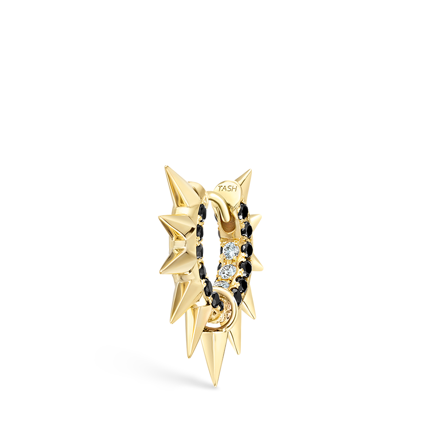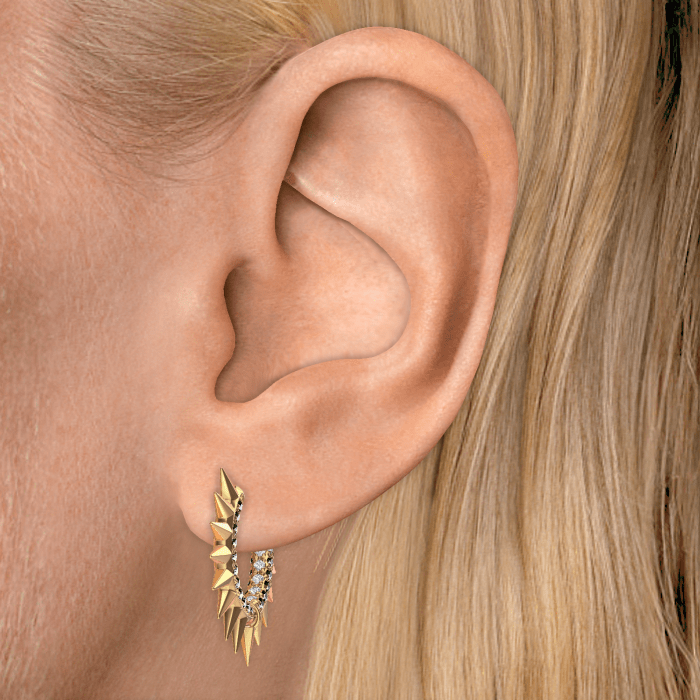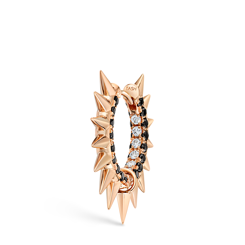 Metal Mohawk with Black and White Diamond Pavé Hoop Earring