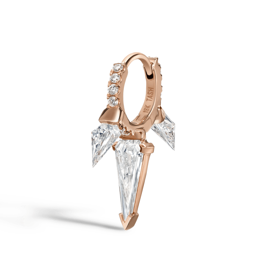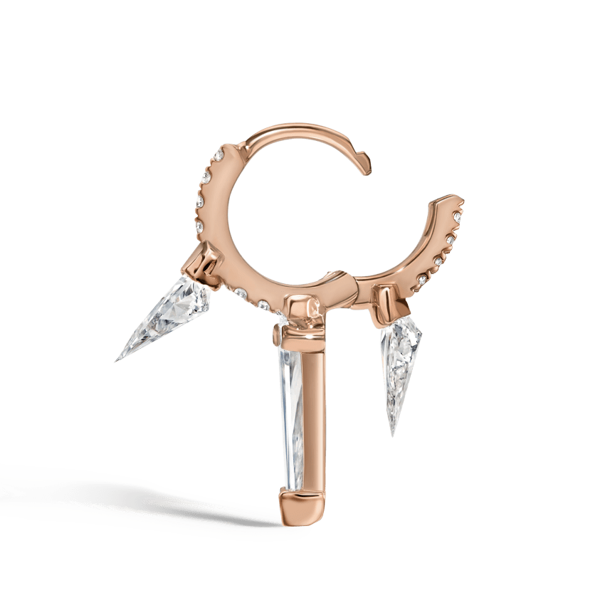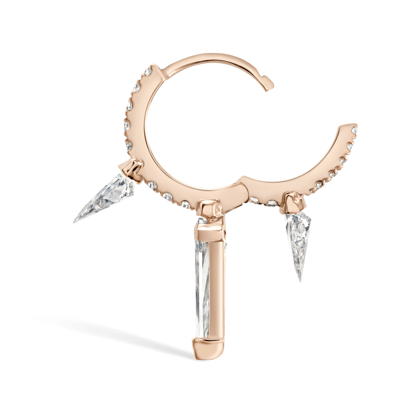 Silhouette Diamond Triple Long Spike Eternity Hoop Earring